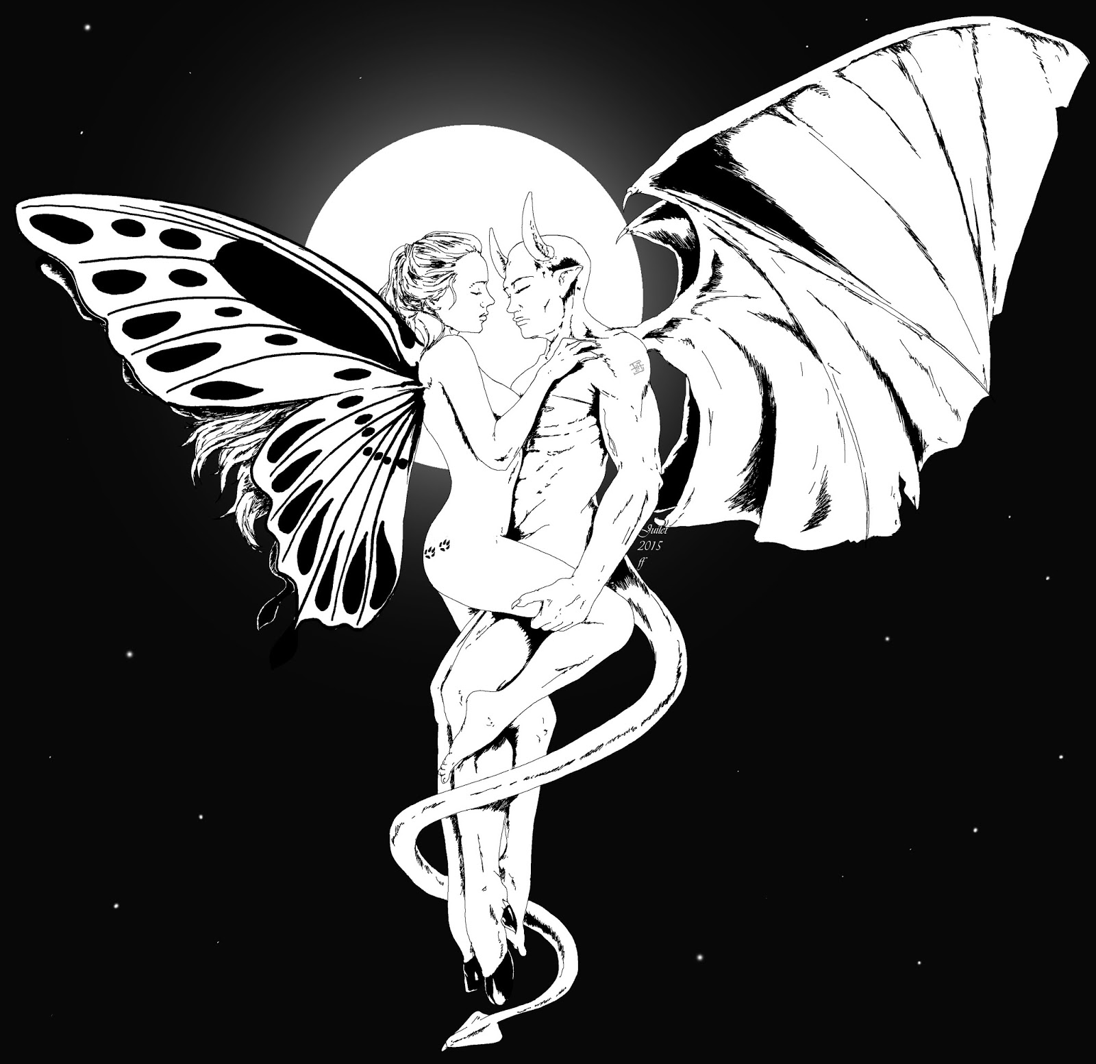 There was once a rumour passed about, by the devil's bodyguards, that Fae had allowed him to find her at a satanic orgy, and that Fae, naked and beautiful, her body sweat glistering from the orgy, had invited him to take her on the altar.