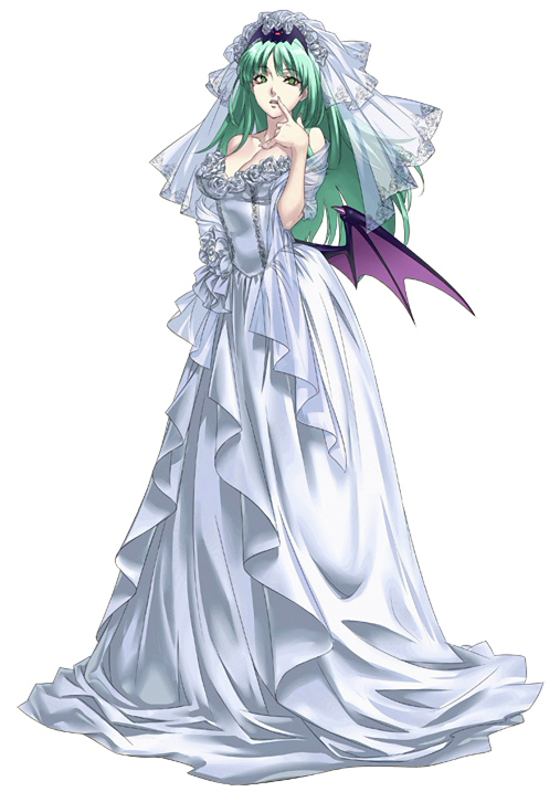 Official art of Morrigan wearing a wedding dress (alternate costume) in Cross Edge.